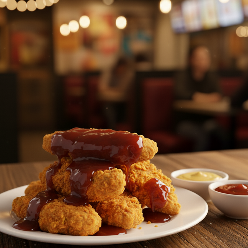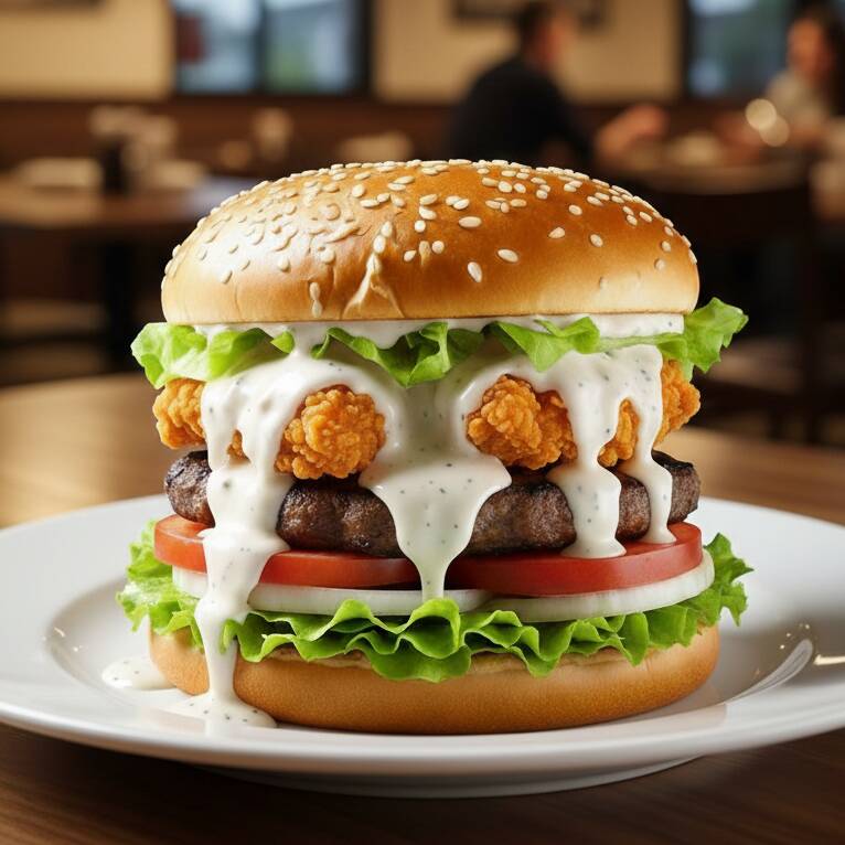 No te ensucies los dedos, solo el alma de sabor. Esta hamburguesa te trae la explosión de tu salsa favorita envuelta en jugosos trozos de pollo boneless crujiente, todo entre pan y aderezos, El placer de las alitas, pero sin hueso y listo para devorar."