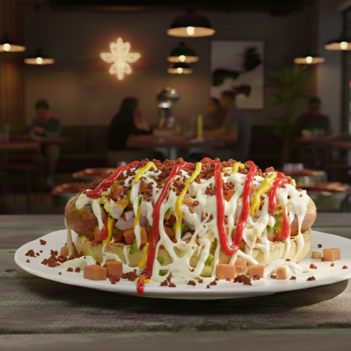 Si con una no te llenas pide entonces 2 esta promocion es para ti o para compartir con tu peor es nada :3, compuesta con nuestra carne de res, bimbollo, tocino ahumado queso oaxaca, gratinado, aderezos y vegetales y picante a tu gusto