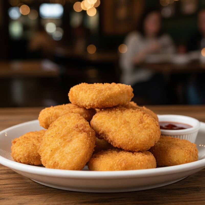 Ricas nuggets de pollo acompañados con catsup, ranch y salsa BBQ. *los condimentos van aparte*