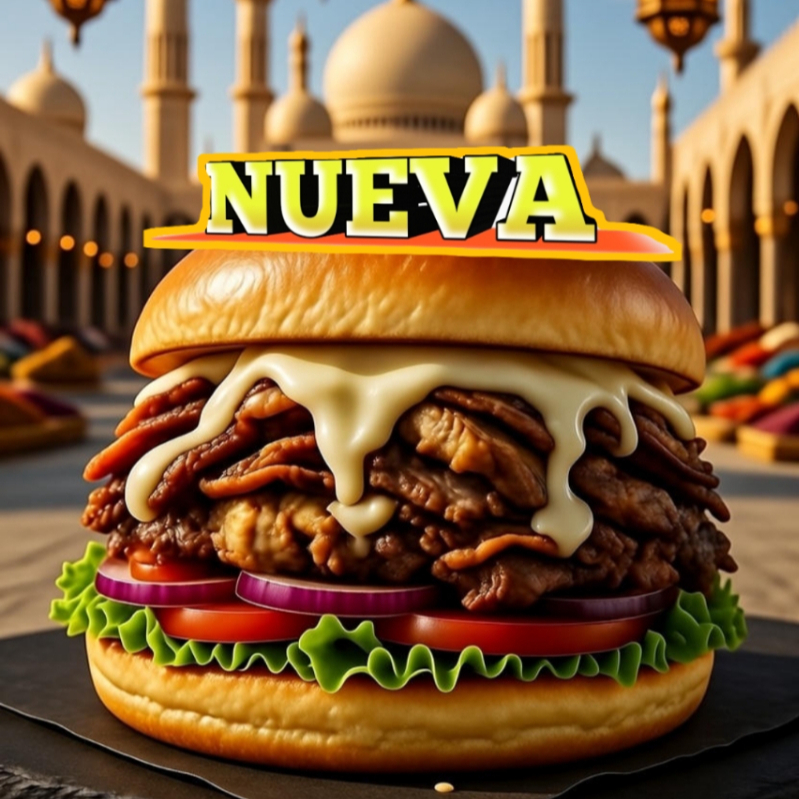 Una combinación irresistible de sabores. Con 150 gramos de jugosa carne premium y 100 gramos de carne árabe, esta hamburguesa se complementa con queso manchego fundido, frescos jitomates, cebolla caramelizada y crujiente lechuga. El toque especial lo aporta la salsa árabe al gusto, junto con los clásicos aderezos: mayonesa y ketchup. ¡Una experiencia única en cada bocado!