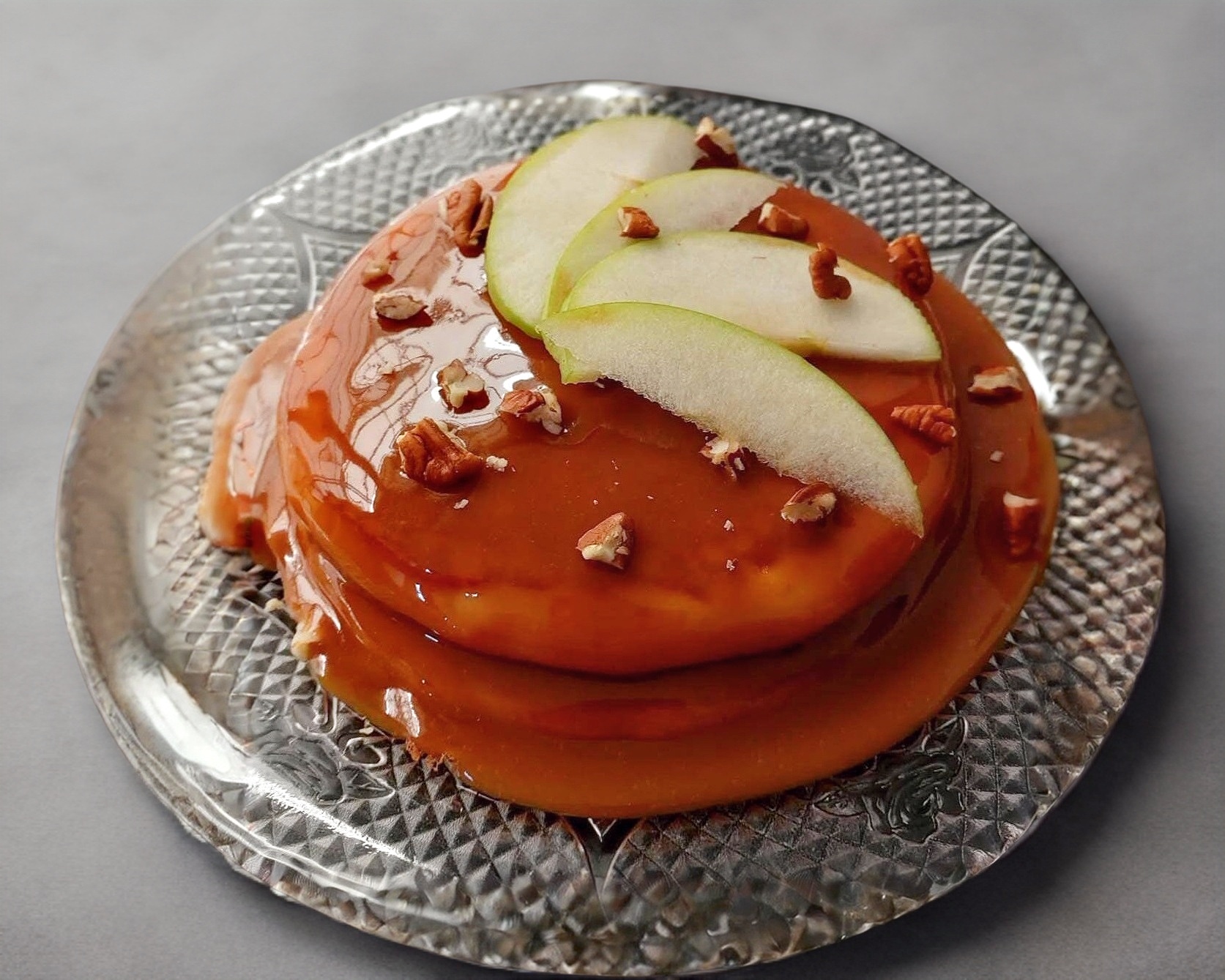 2 hot cakes con cajeta, manzana y nuez.