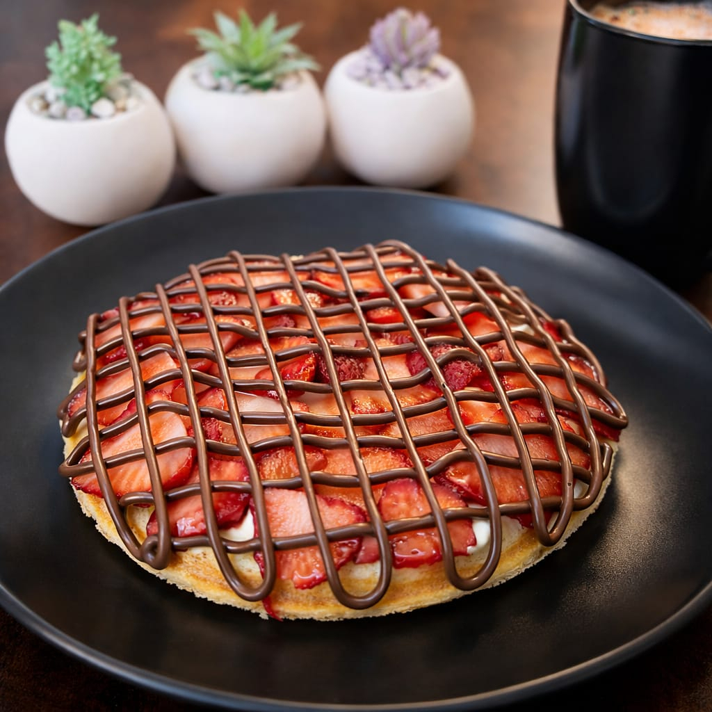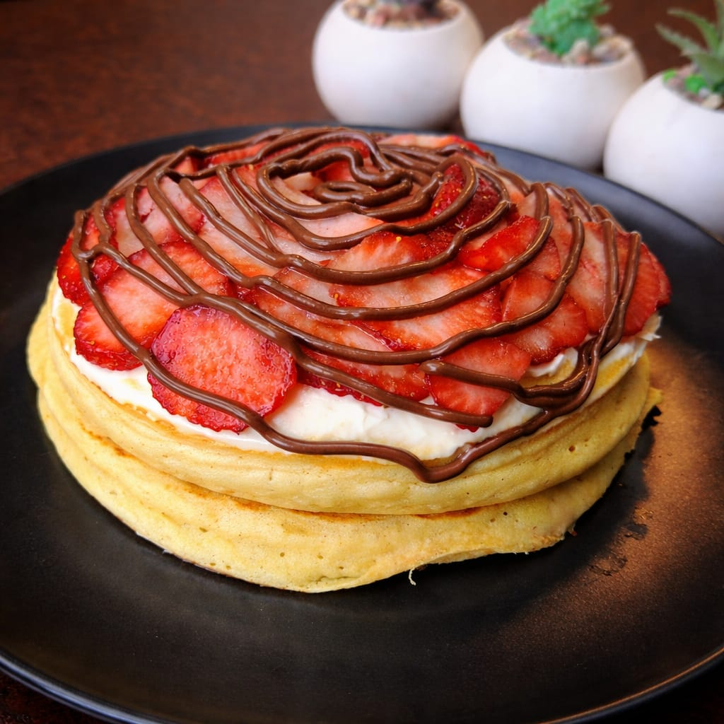 2 hot cakes con Nutella, philadelfia y fresa.