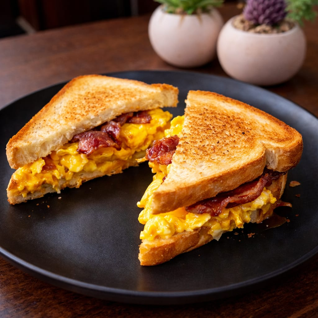 2 huevos revueltos con delicioso queso americano fundido y tocino crujiente.