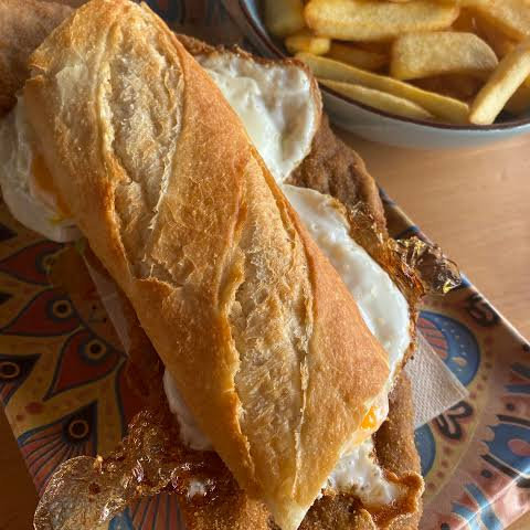 pan de baguette de milanesa de pollo gratinada on 3 quesos, acompañado de aderezos