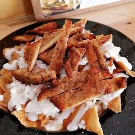 Delicioso chilaquiles rojos acompañados de una exquisita milanesa de pollo queso crema cebolla y aguacate