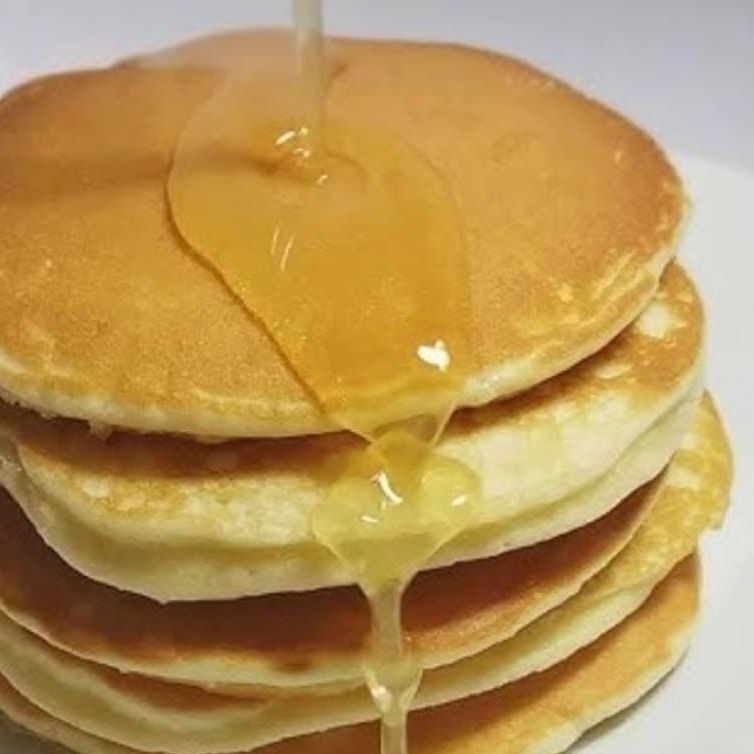 3 exquisitas y suavecitas piezas de hot cakes acompañadas de lechera