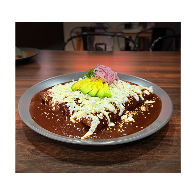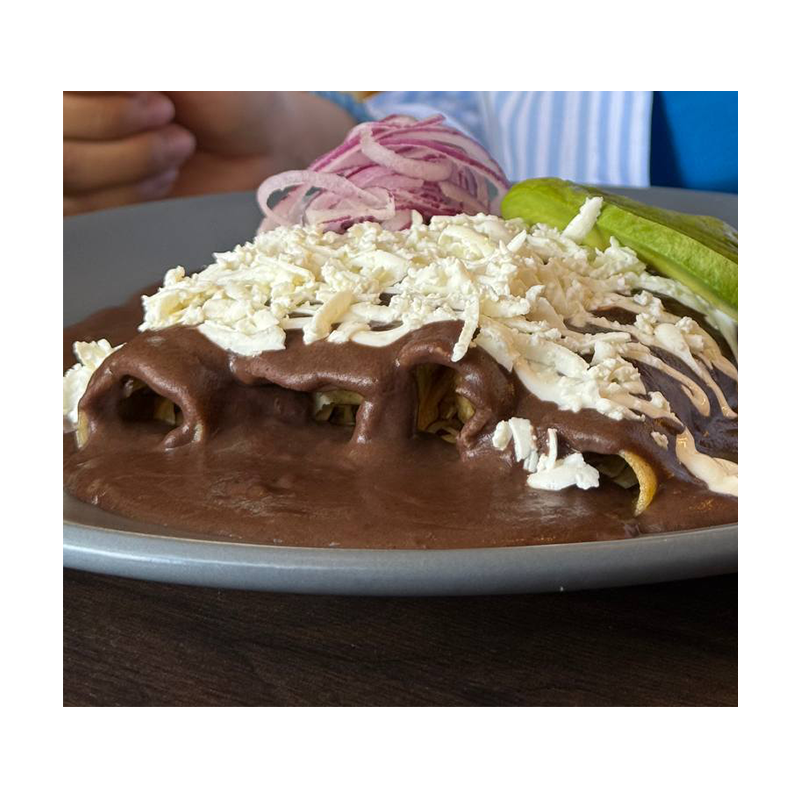Arrachera acompañada de 2 picaditas, 2 enfrijolada y cebollas cambray, aguacate, tortillas y nopal.