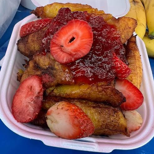 Orden de platanos fritos con leche condensada y mermelada