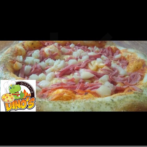 Pizza grande, mitad Hawaiana y mitad pepperoni.