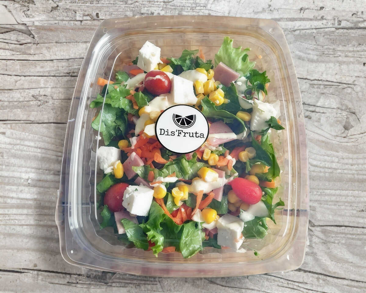 Lechuga, zanahoria, elotitos, cherrys, queso panela, jamón de pavo y aderezo césar.