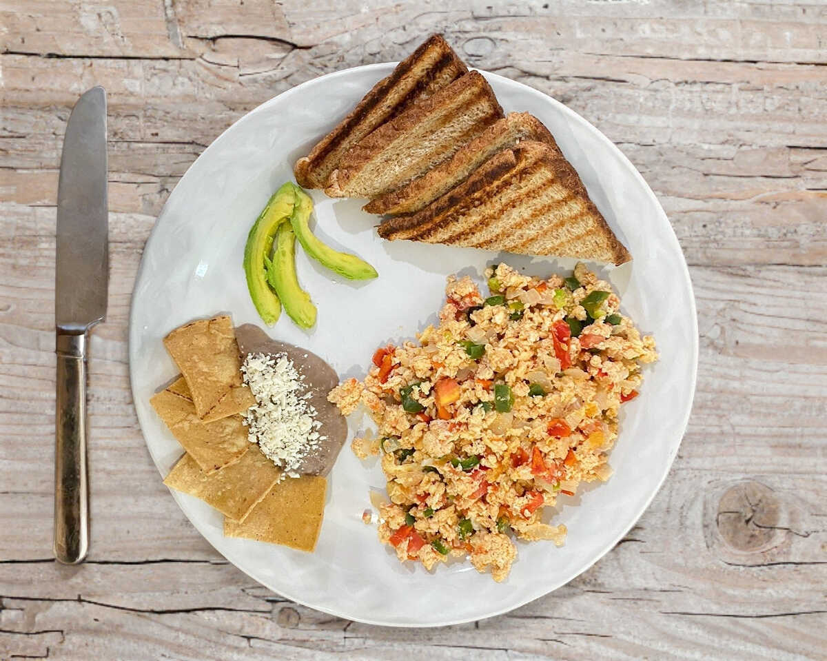 Con frijoles refritos, tortillas o pan integral.