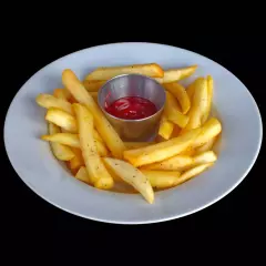 Papas fritas doradas y crujientes por fuera, con un interior suave y delicioso, espolvoreadas con sal y pimienta para un sabor intenso pero agradable. Servidas con una opción de salsa al pesto o salsa de tomate.