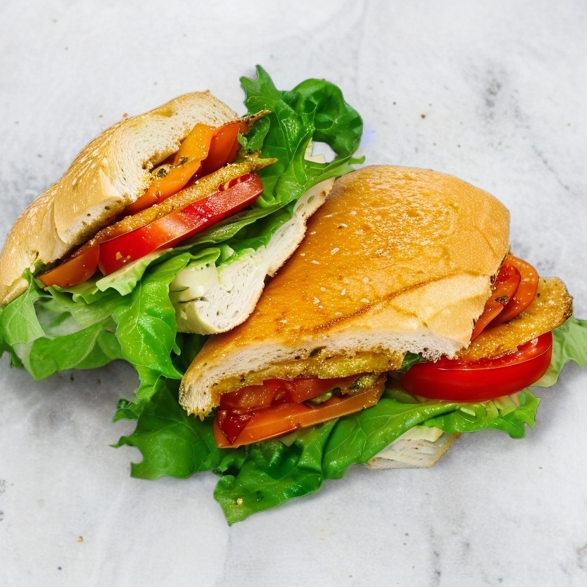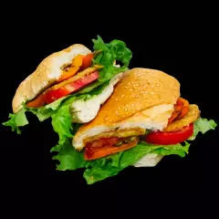 Baguette crujiente, ligeramente tostada y bañada con aceite de oliva extra virgen. Relleno de una mezcla vibrante de vegetales de temporada, acompañados de lechuga fresca y tomate con un toque de aderezo pesto. Todo se complementa con nuestra salsa secreta, que realza la combinación de ingredientes.