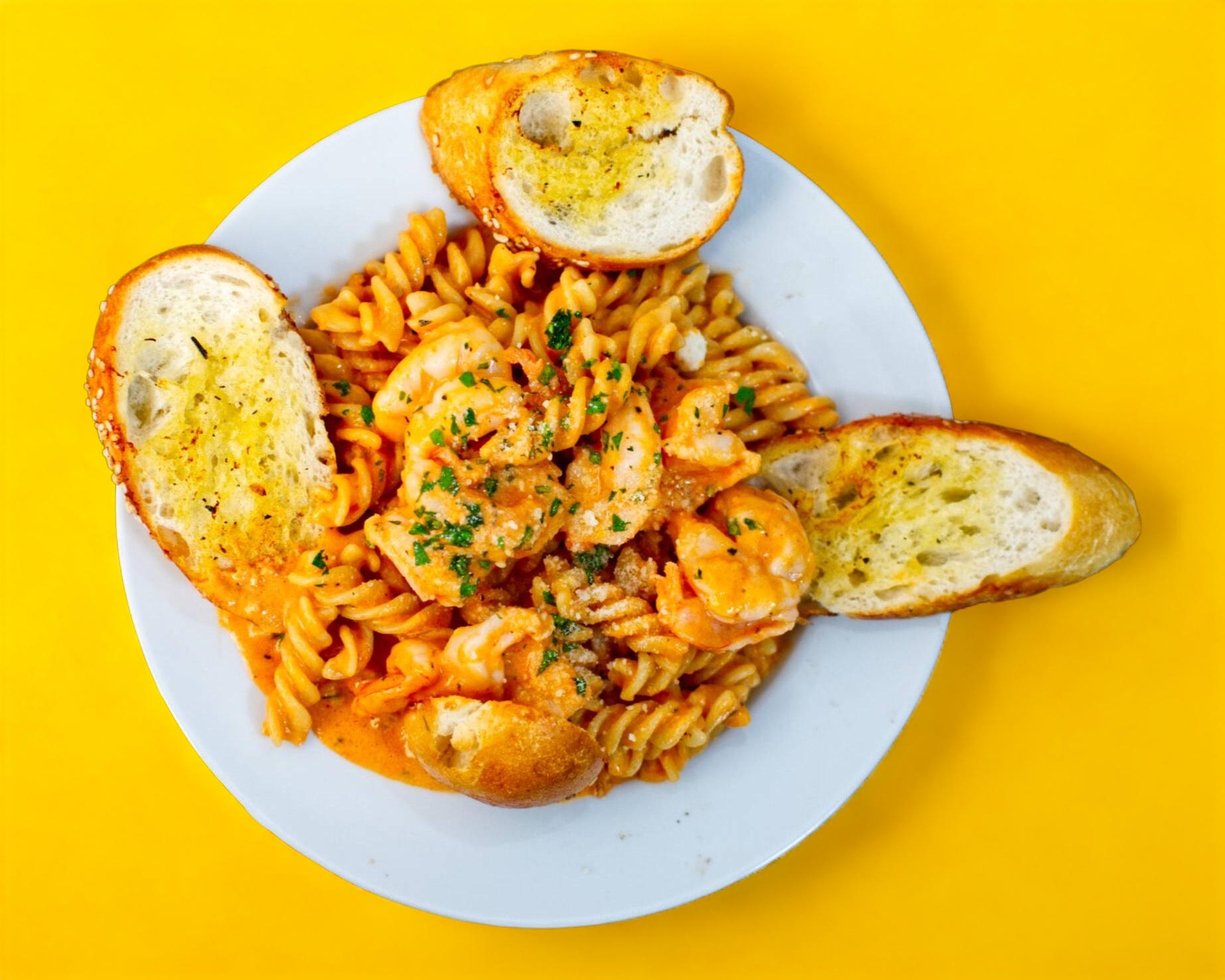 Un plato que combina tradición e innovación. Pasta cocida al dente, mezclada con una delicada salsa rosa que fusiona lo mejor de la cremosa salsa Alfredo y la vibrante marinara, realzada con hierbas italianas. Espolvoreada con queso parmesano rallado, este plato se convierte en una experiencia inolvidable para el paladar.