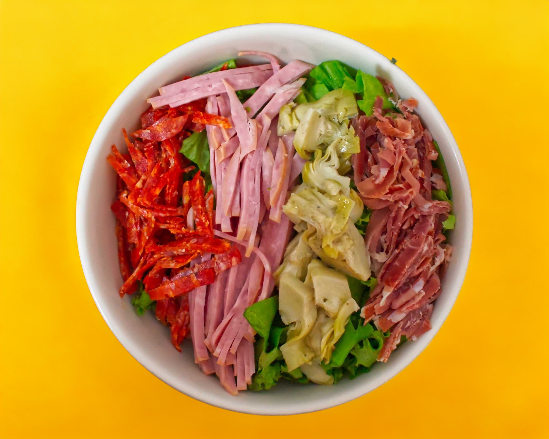 Esta ensalada reúne una base fresca de lechuga crujiente con el toque sofisticado de alcachofas marinadas, aportando una nota delicada y ligeramente ácida. La intensidad del pepperoni, el salami y el jamón prosciutto crea un equilibrio irresistible entre lo picante, lo ahumado y lo suave que armoniza con un aderezo italiano vibrante.