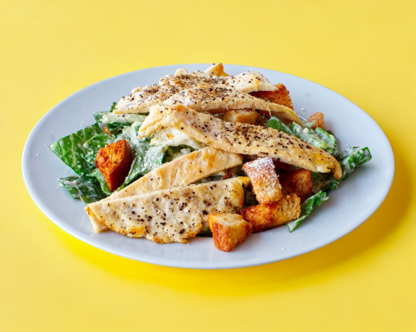 Nuestra ensalada César está elaborada con crujiente lechuga romana, aderezada con nuestra exclusiva salsa César hecha en casa. Acompañada de trozos de pan tostado dorados y queso parmesano recién rallado.