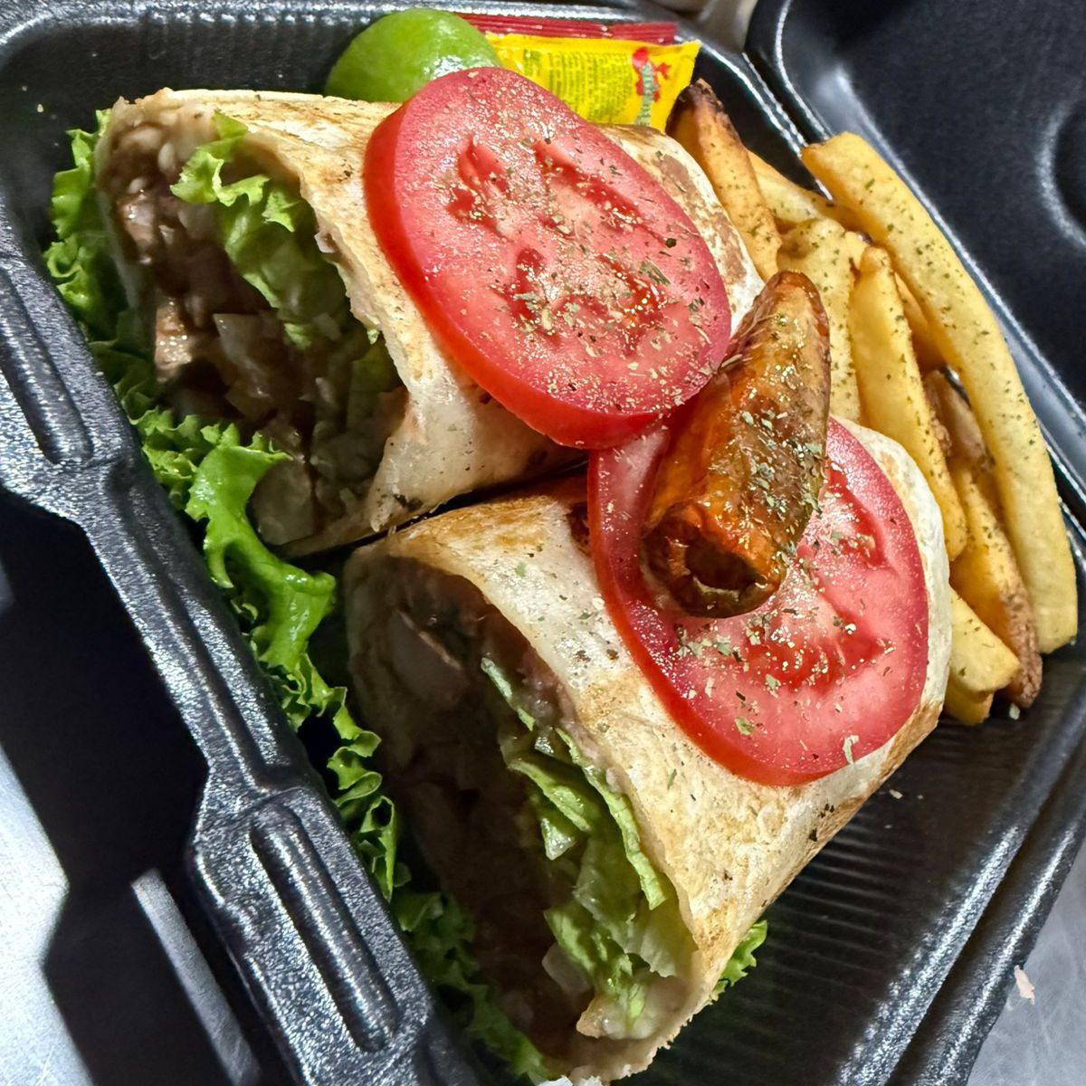 Tortilla de harina de 30 CM frijoles lechuga queso manchego boneless 150 gracias de papas a la francesa