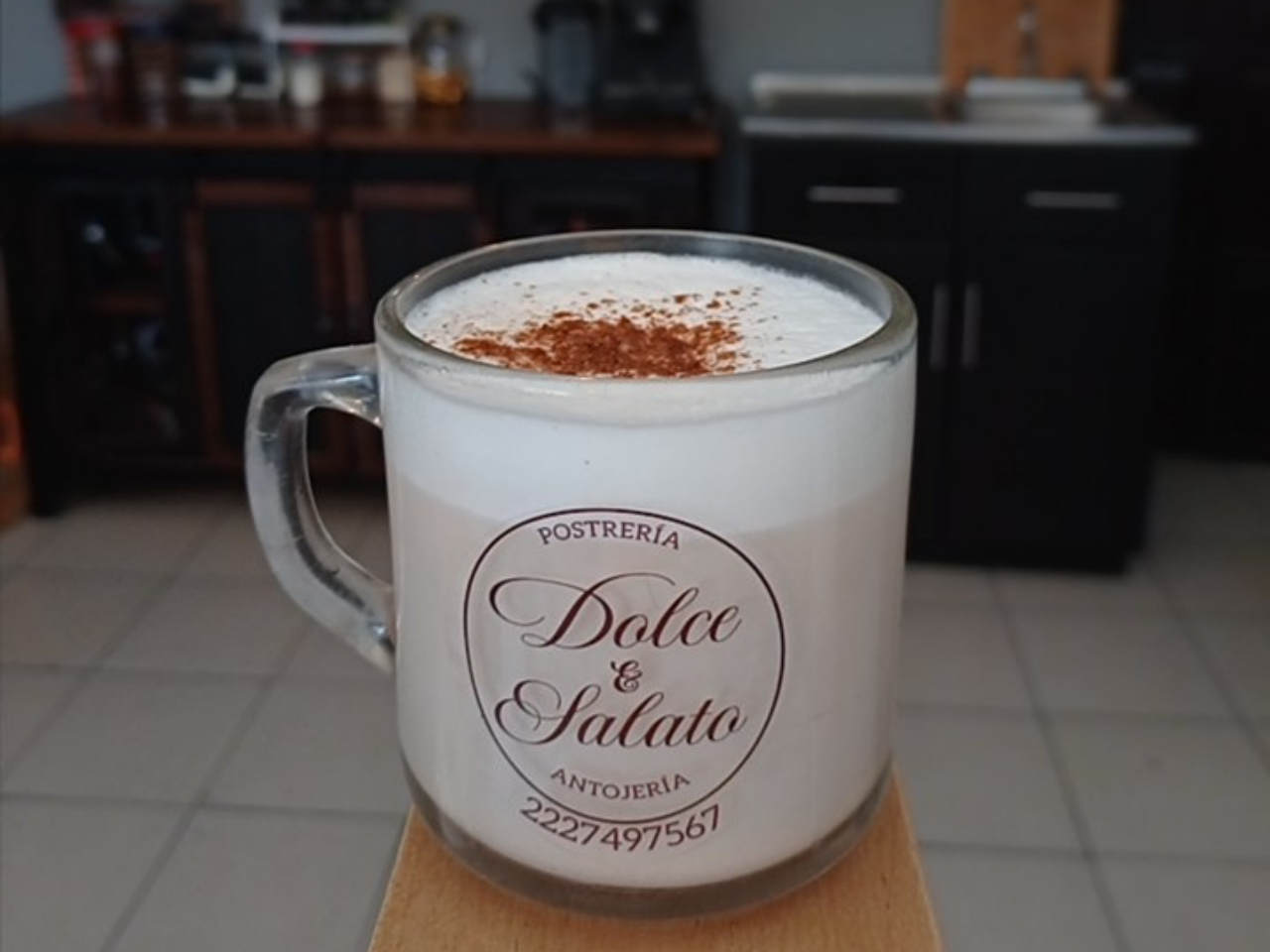 Capuchino de cajeta con leche a elegir espolvoreado con canela (10 oz/295 ml).