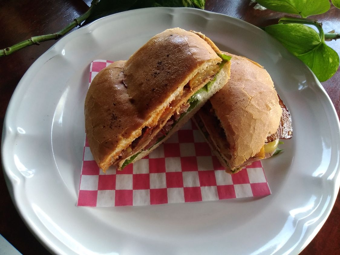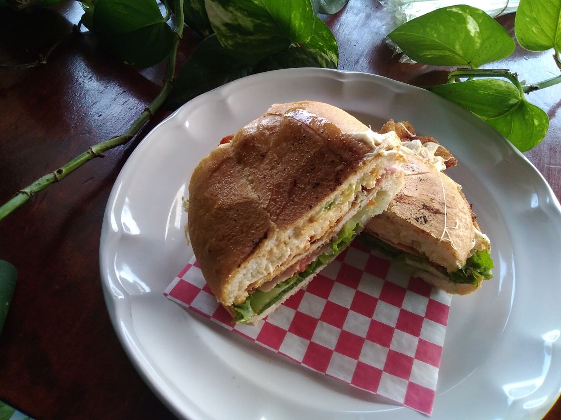 Cuernito relleno de jamón, , verduras queso, aguacate y mayonesa.