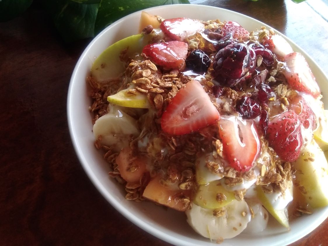 un menu completo con fruta,bebida a elegir y platillo de tu eleccion