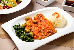 Filete de tilapia, tomates, aceitunas, aceite de oliva y alcaparras.200g