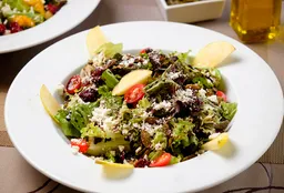 Combinacion de lechugas, arándano, queso de cabra, pepita caramelizado, tomate, manzana y reducción de balsámico. 200 gr.