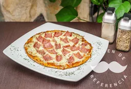 Salsa de tomate natural, queso gouda, jamón, piña y albahaca. Elige el tamaño Chica (24cm y 220g) o Grande (30cm y 260g)