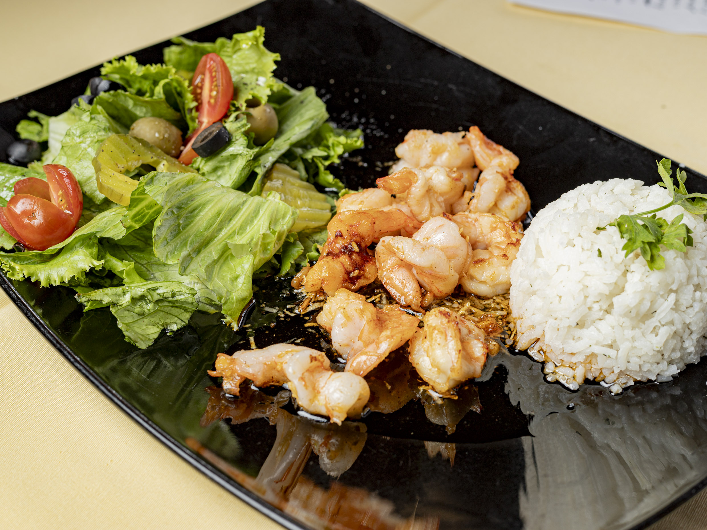 Camarones con ajo, aceite de oliva. 130g