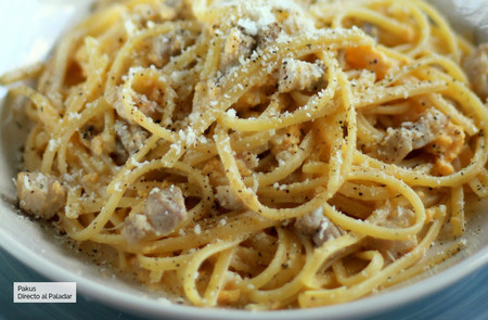 Pasta con aceite de olivo, huevo y tocino.200g