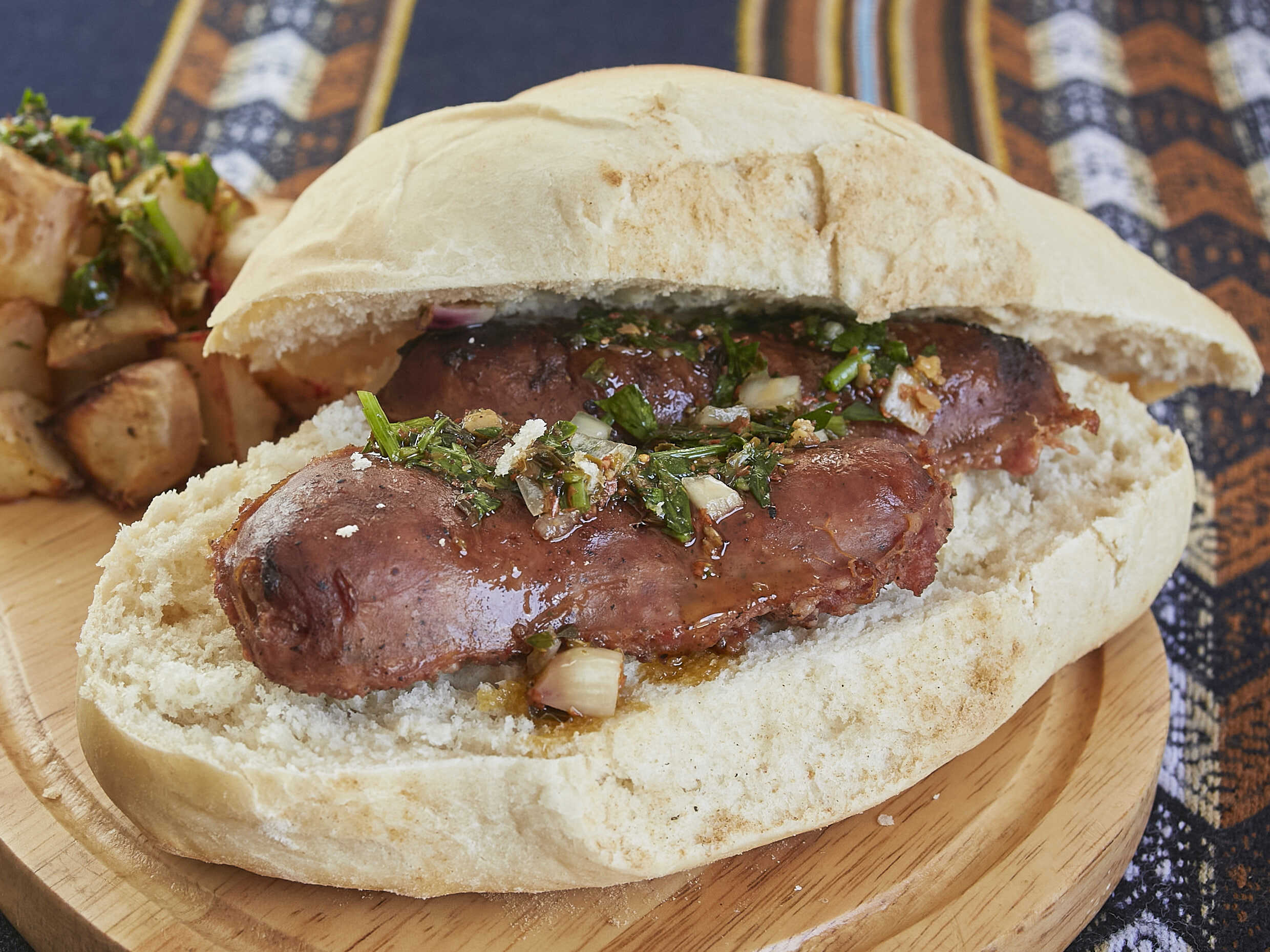 1 Choripan artesanal con chimichurri + 1 alfajor