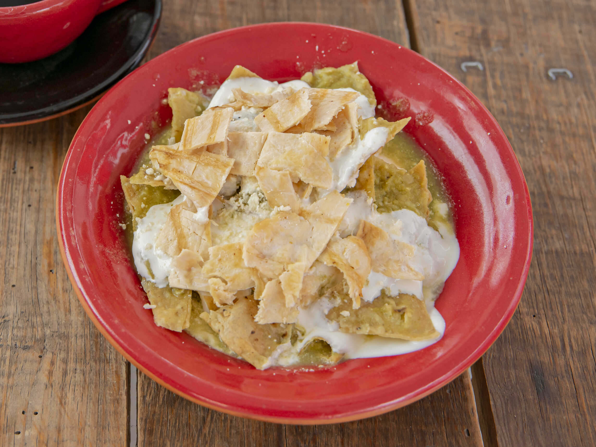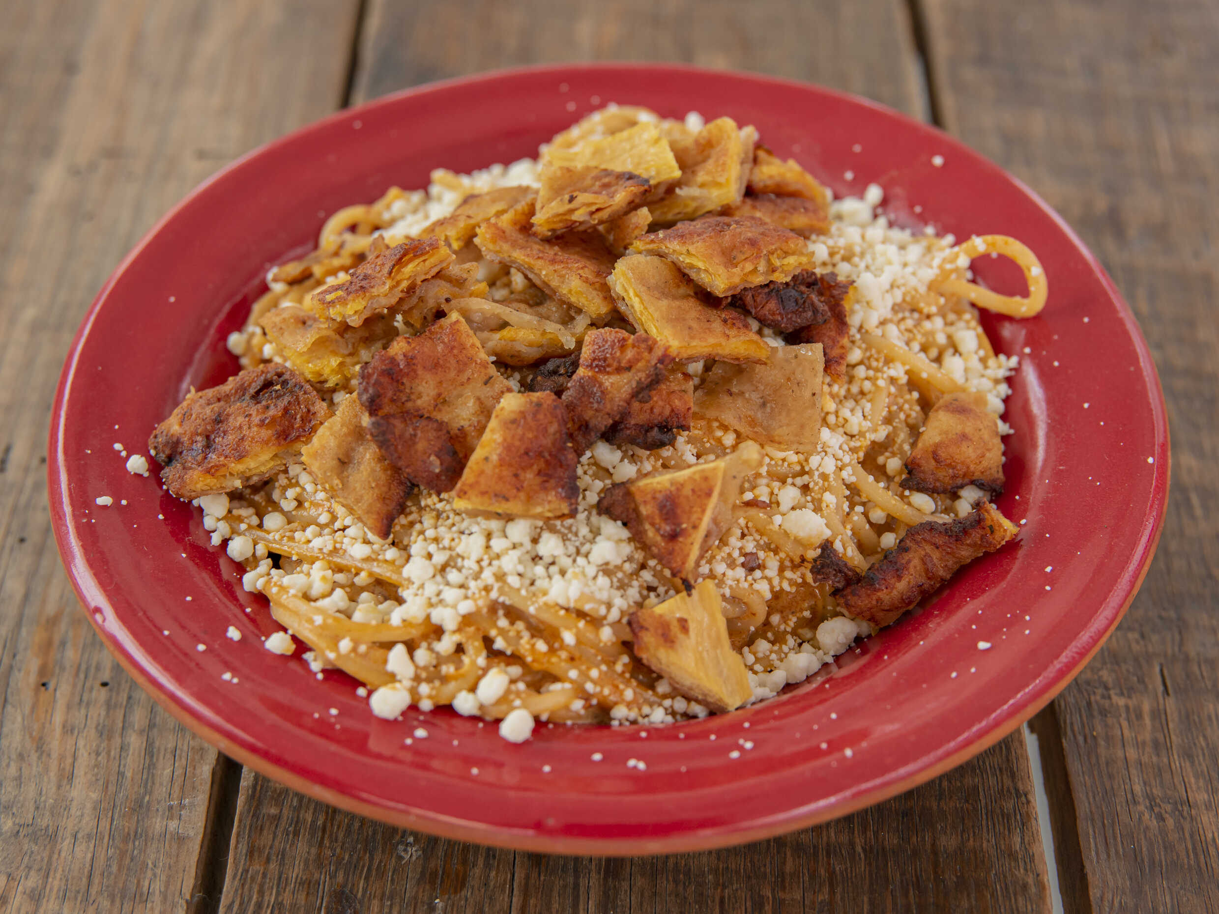 (totopo bañado en salsa de su elección crema y queso añejo)