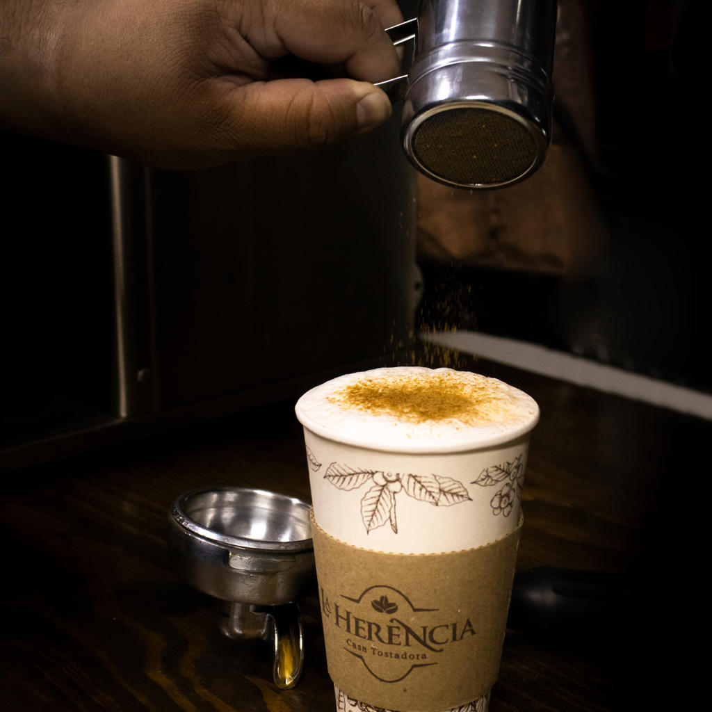 Bebida a base de hielo, leche y Chai, decorado con panna y canela