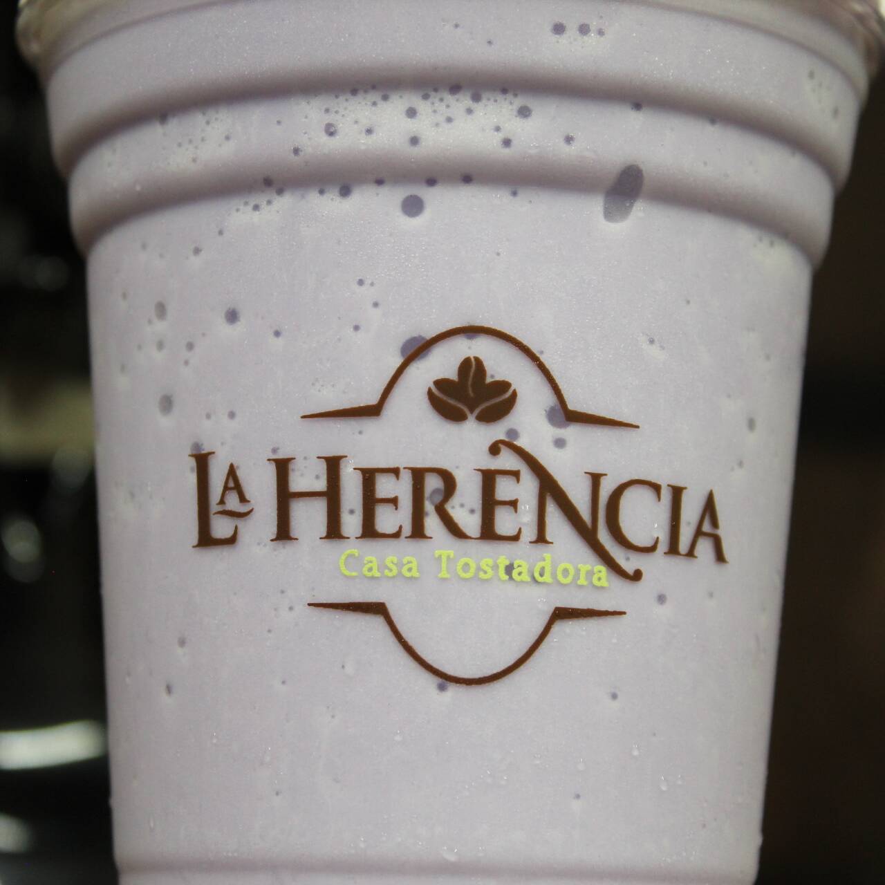 Bebida a base de hielo, leche y taro purple decorado con panna y bombones