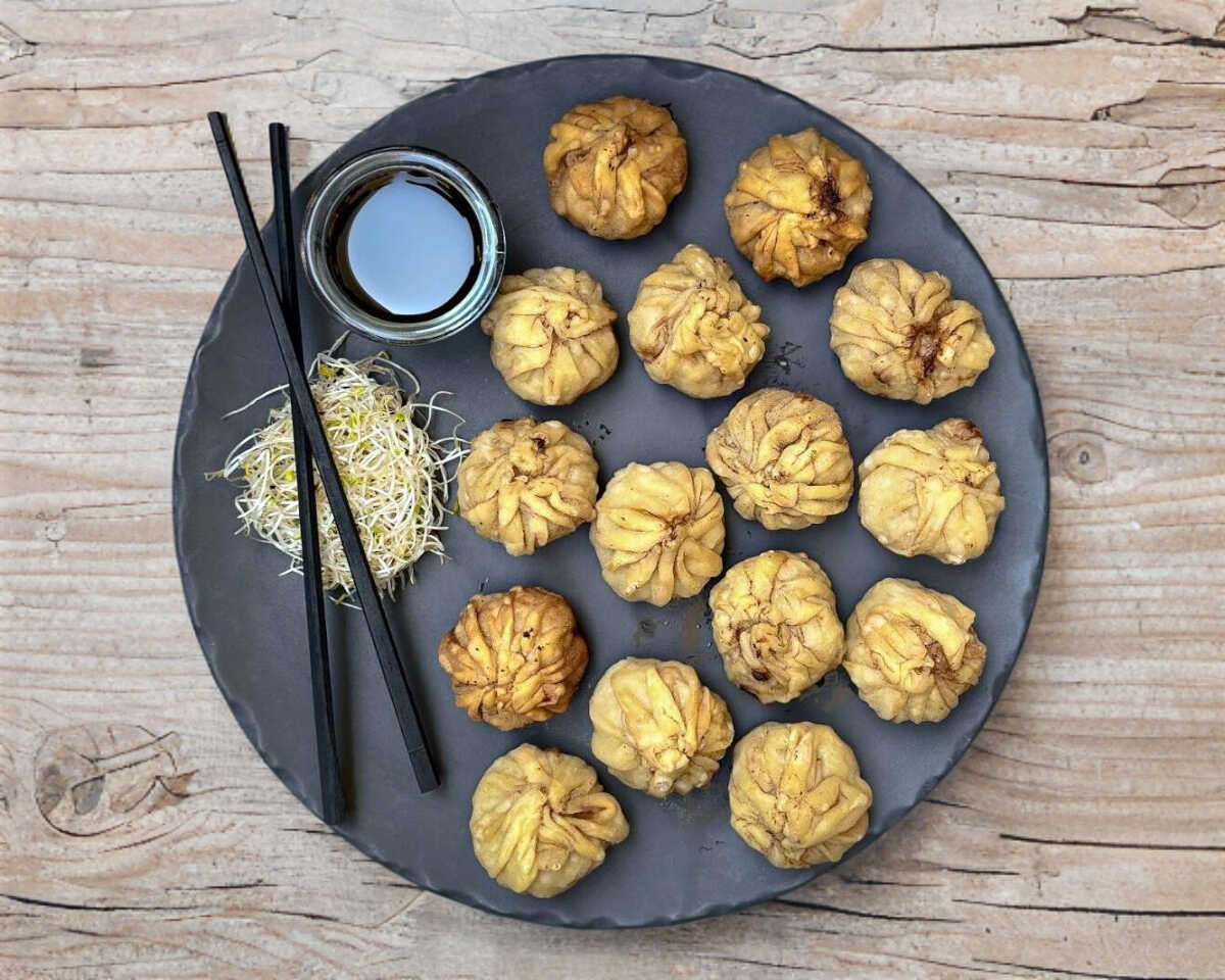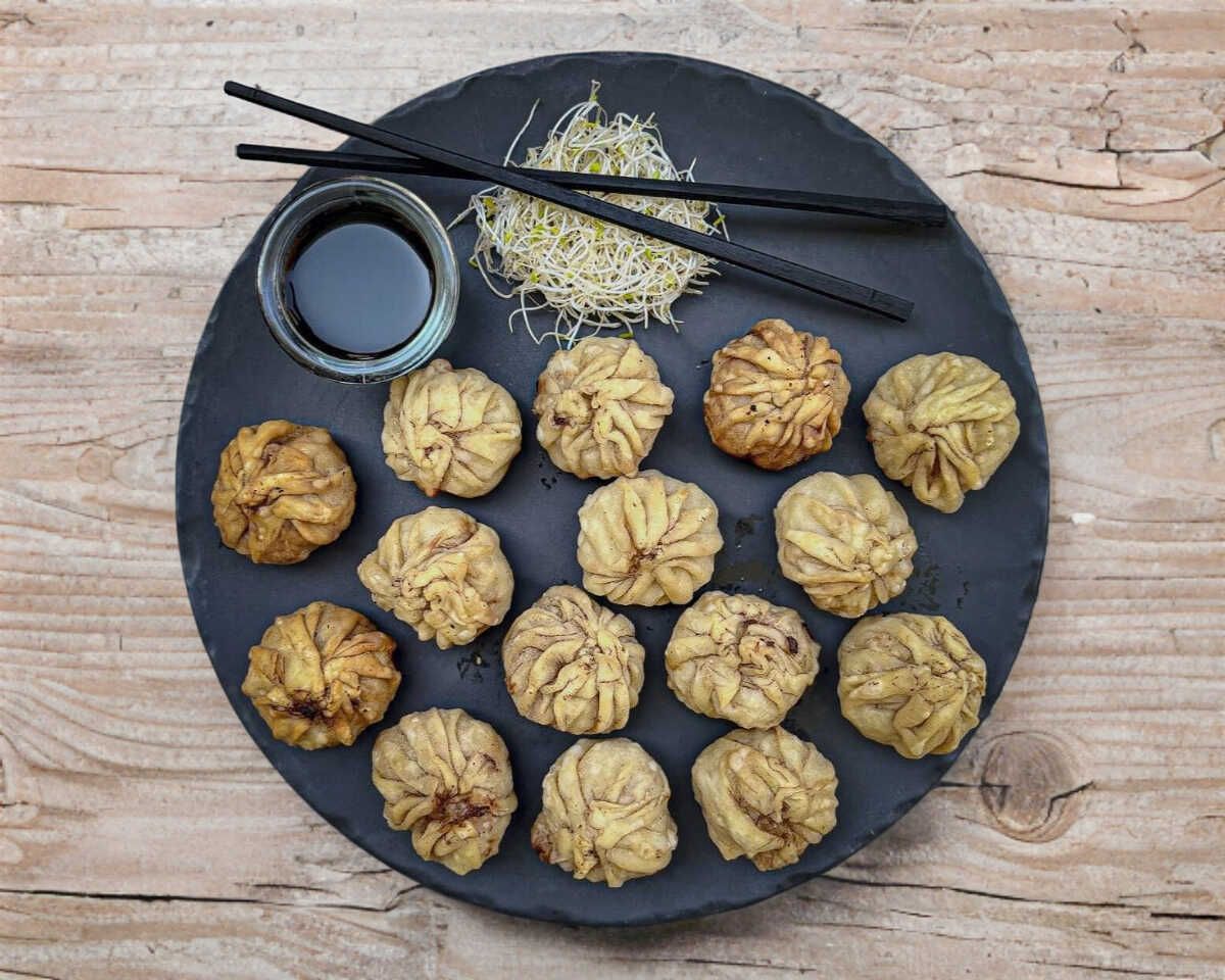Deliciosos dumplings hechos a mano, rellenos de opciones irresistibles (vegetales) champiñón, zanahoria, repollo, cebolla y especies.