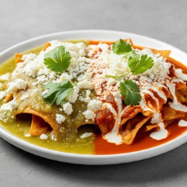 Chilaquiles con salsa verde, salsa roja y toppings a elección (las salsas se envían aparte).