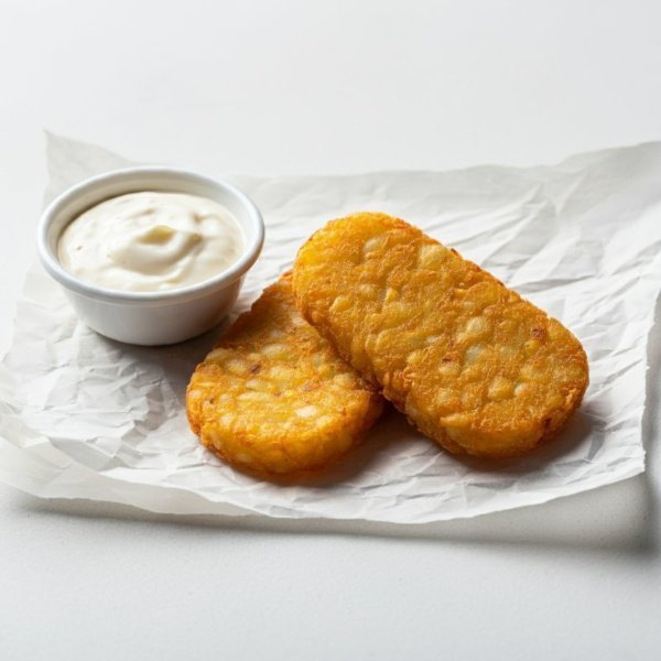 2 papas hash brown. Incluyen salsa catsup por aparte.