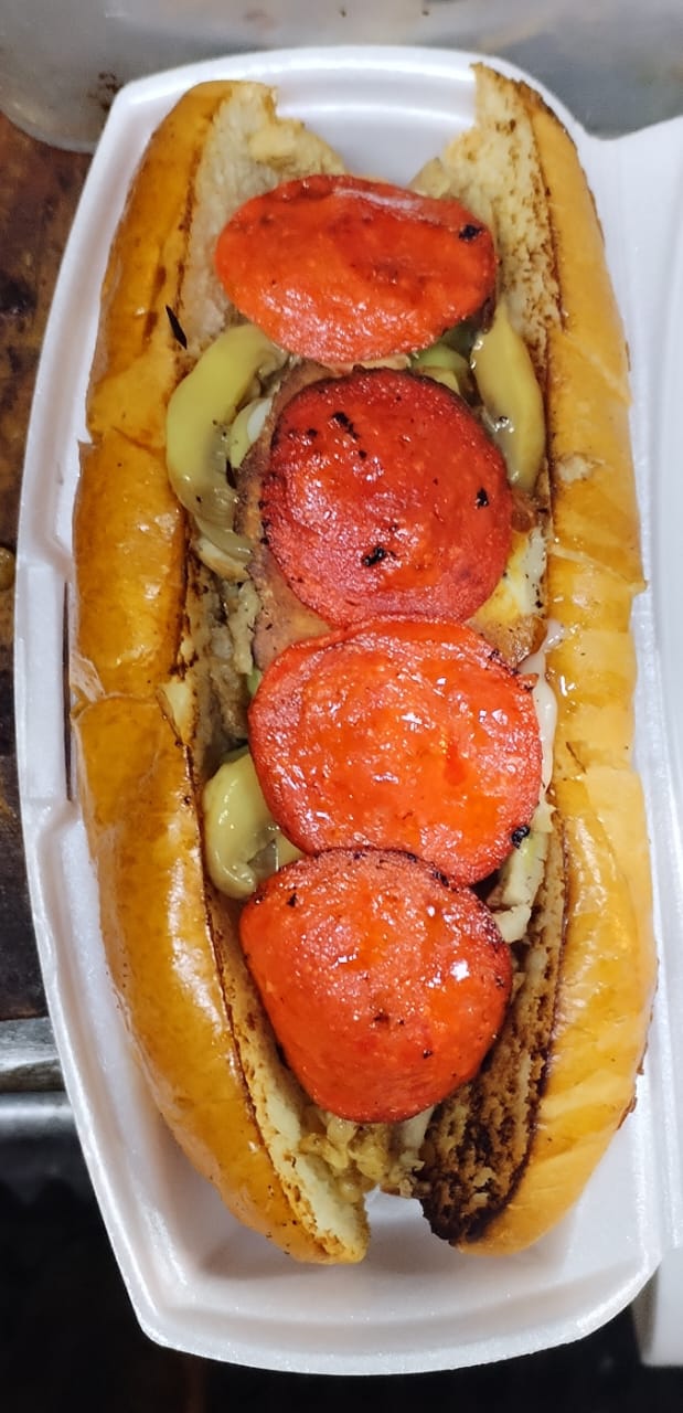 Pan Brioche, carne Asada, chorizo, cebolla, jalapeño y guacamole.