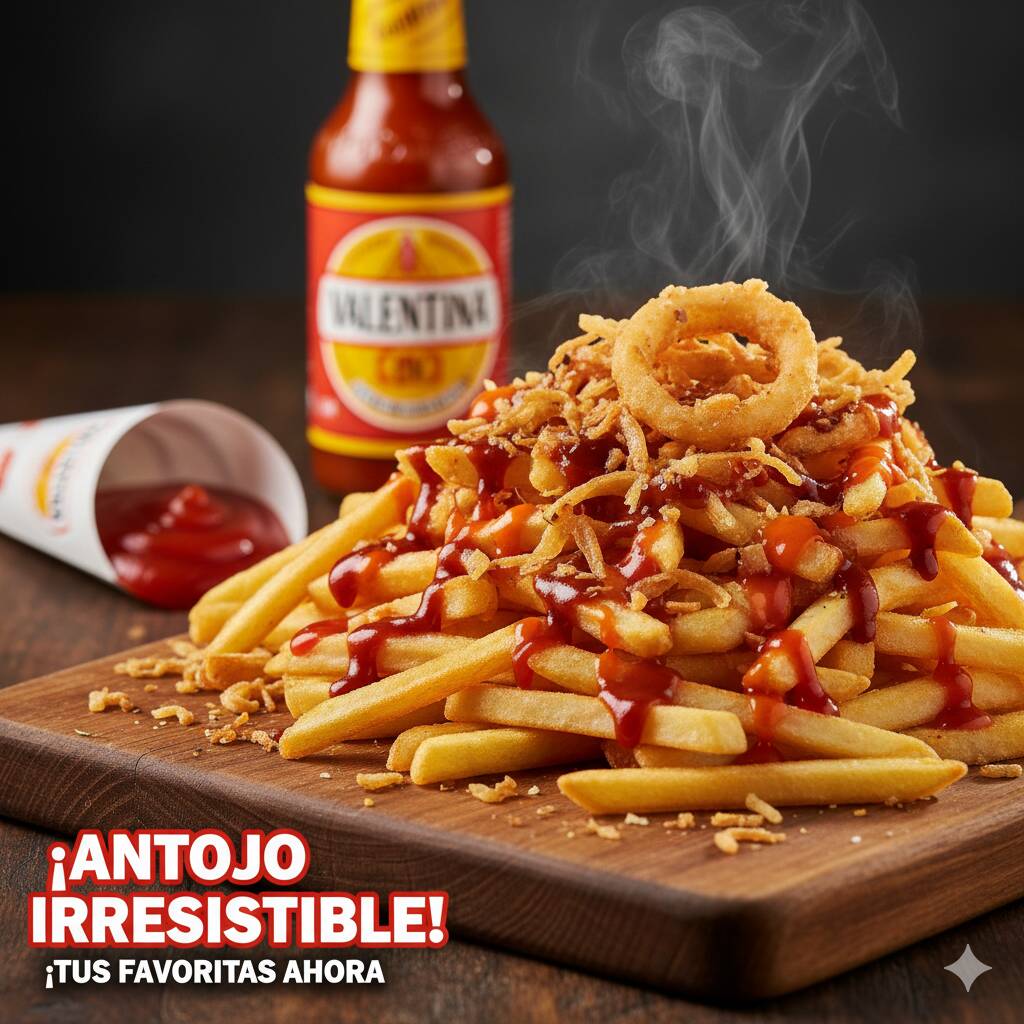 Papas a la Francesa con Bbq y Cebolla Crujiente