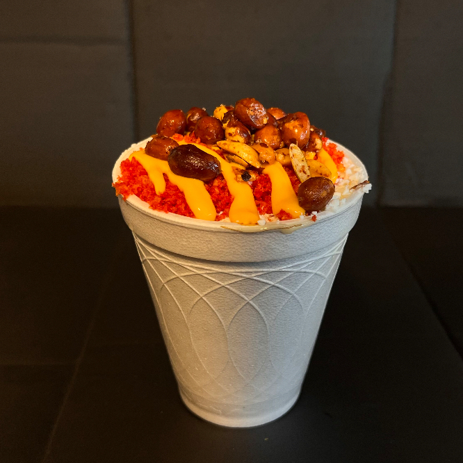 Especialidad ChiquiExclusiva, una cama de tu maruchan preferida cubierta con unos esquites preparados y una bolsa de Sabritas hasta arriba, agrega hasta tres toppings y disfruta de nuestras salsas