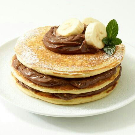 Ricos y Esponjositos acompañados de Nutella, decorados con fruta y crema Batida.