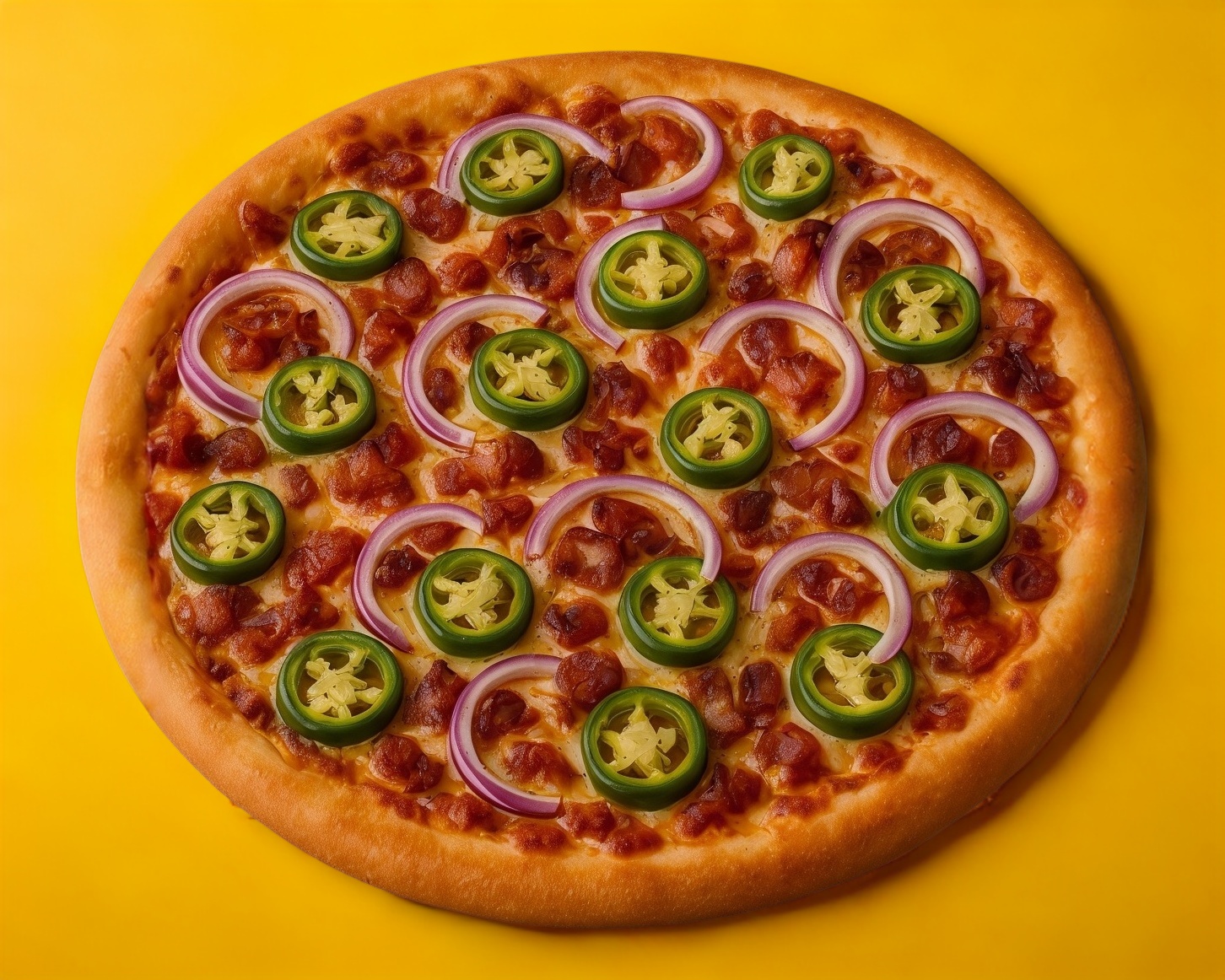 Tocino crujiente, jalapeño, cebolla, salsa y queso