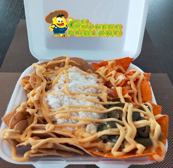 Deliciosa mezcla de Tostachos y esquites, cubierta de mayonesa, queso añejo, salsas de la casa y queso amarillo tipo cheddar.