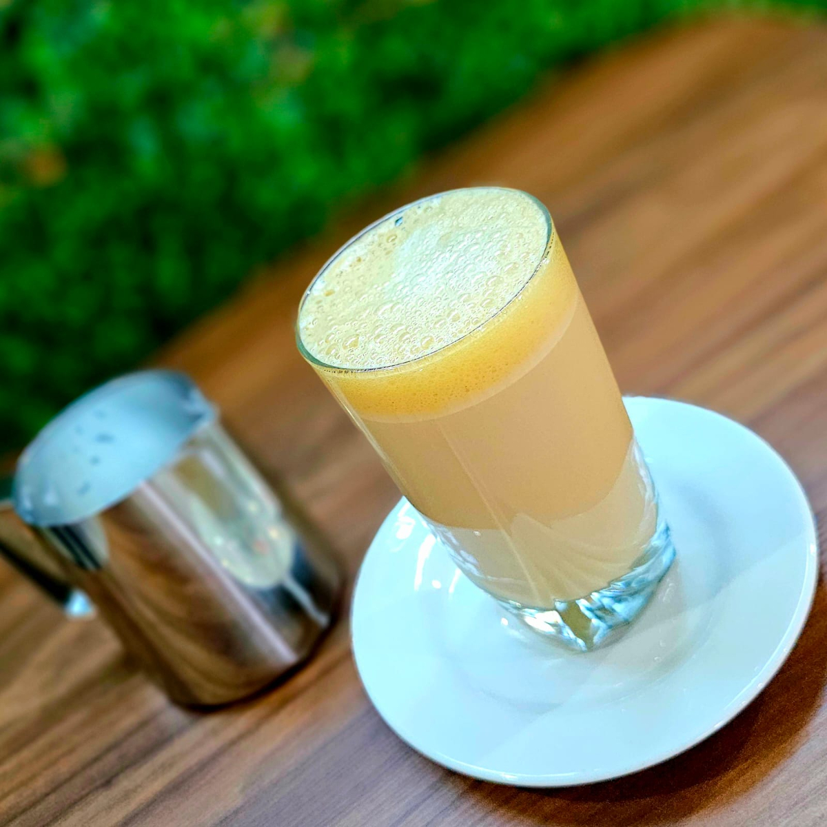 Jugo con piña, apio, naranja, pepino y nopal.