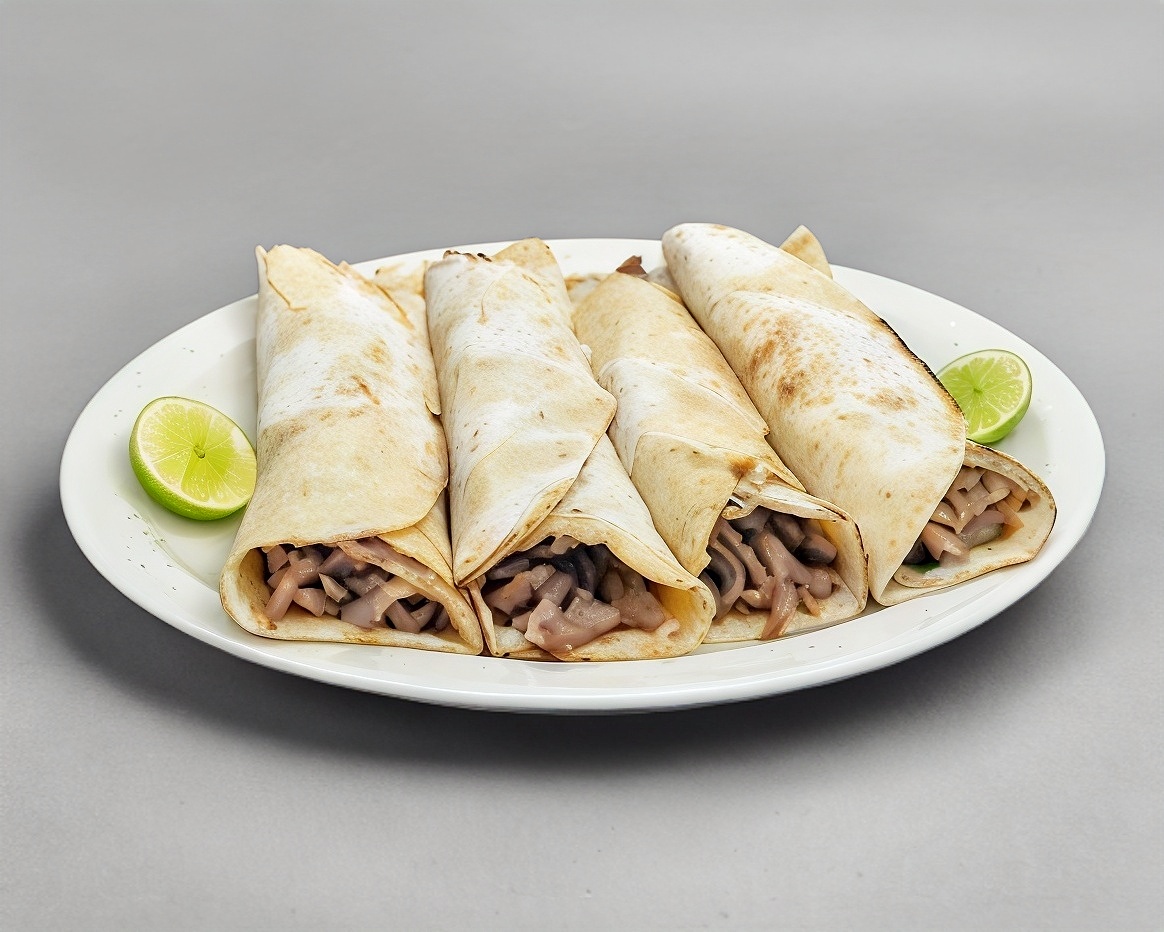 Tortilla de maíz, carne árabe.