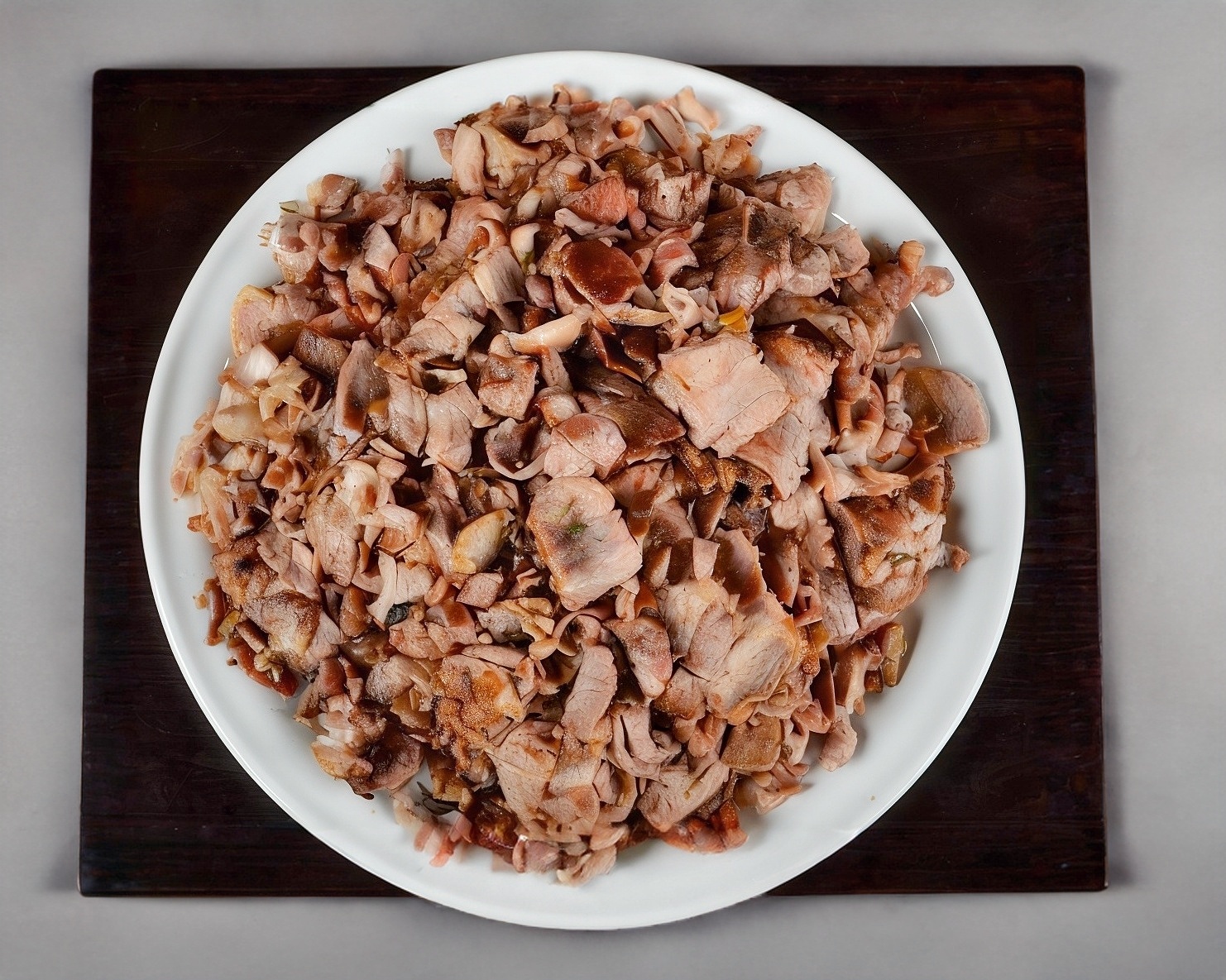 Tortilla de maíz, carne pastor.