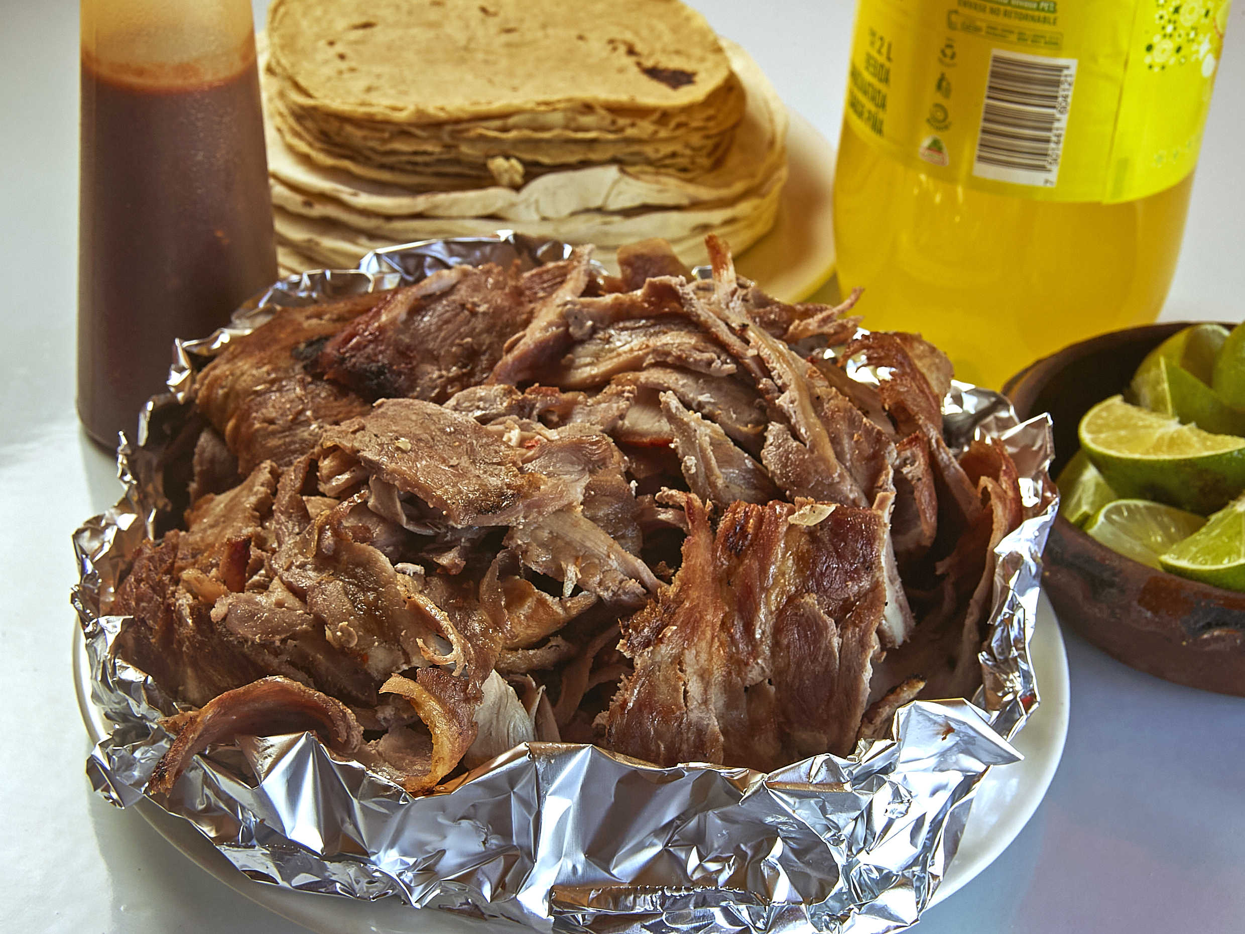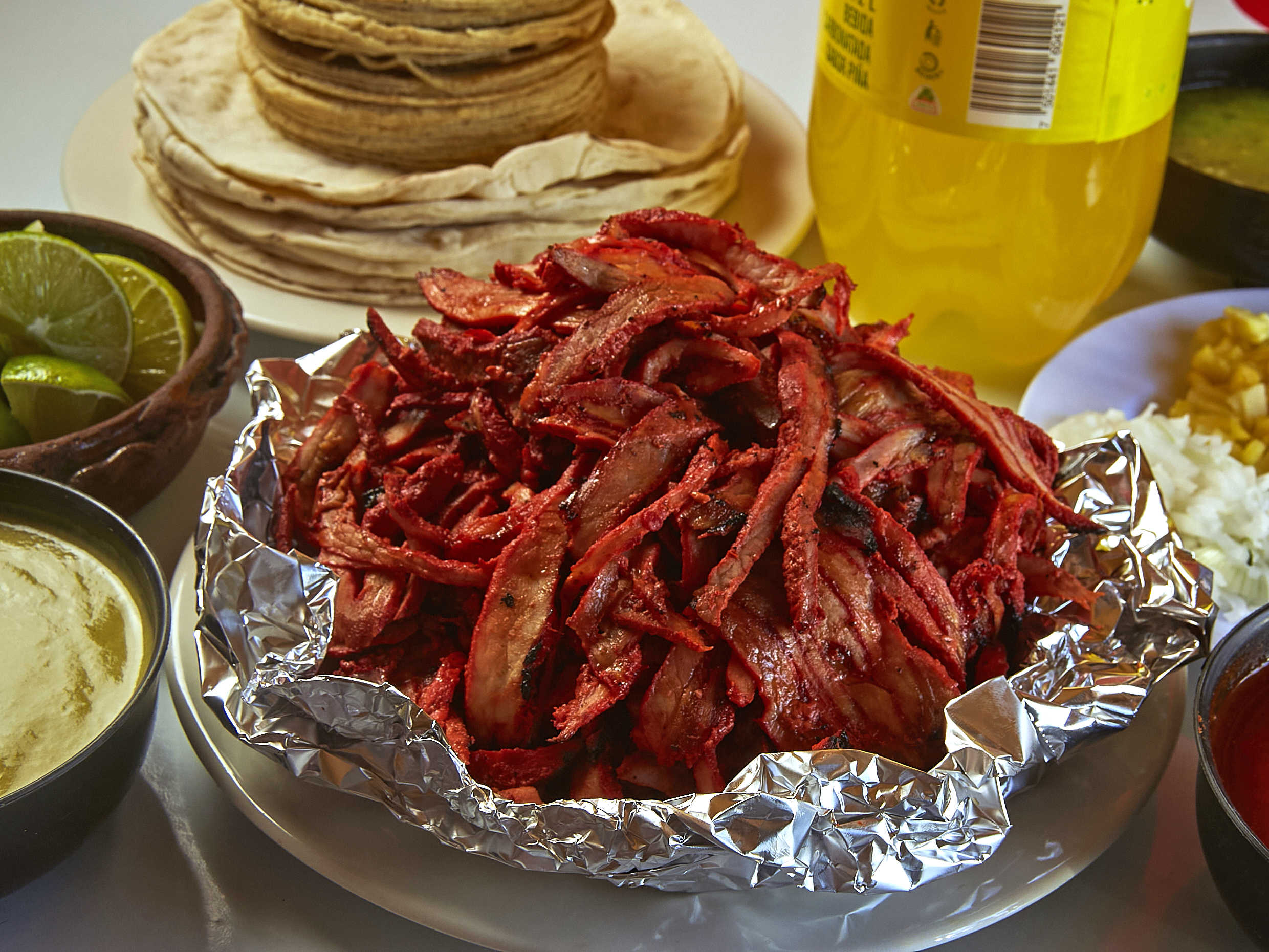 1/2 carne árabe, salsa, limón y 10 tortillas