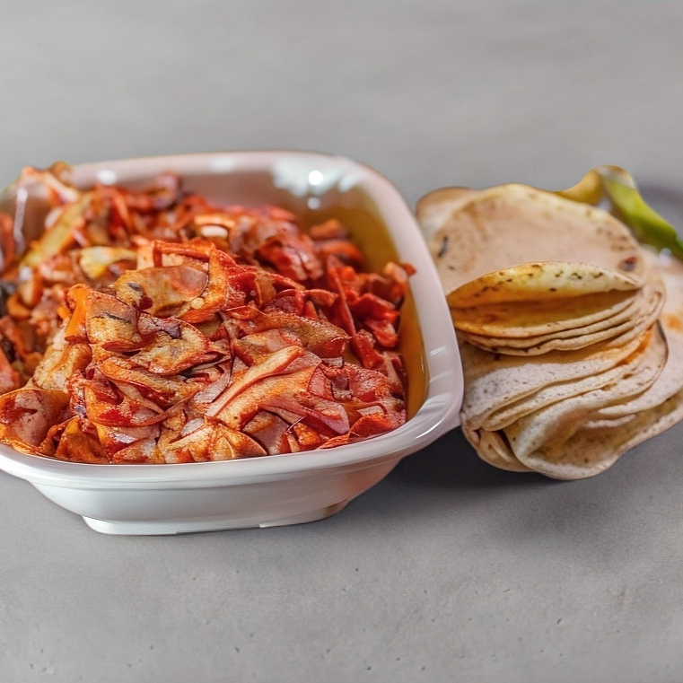 1/2 Kilo Pastor, 2 porciones + Tortillas de maiz, 3 Salsas (Roja, Verde y Cremosa), limones, piña, cebolla y cilantro*1 (Se envia aparte )+ Jarrito de 2 Litros*1
