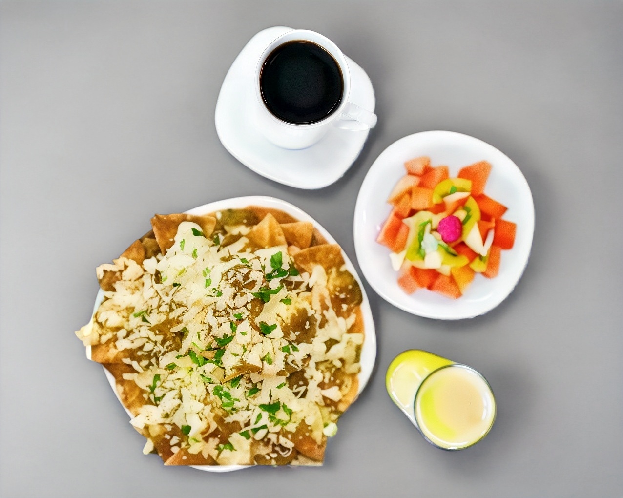 Chilaquiles*2 + Cafe de olla*2 + Fruta*1