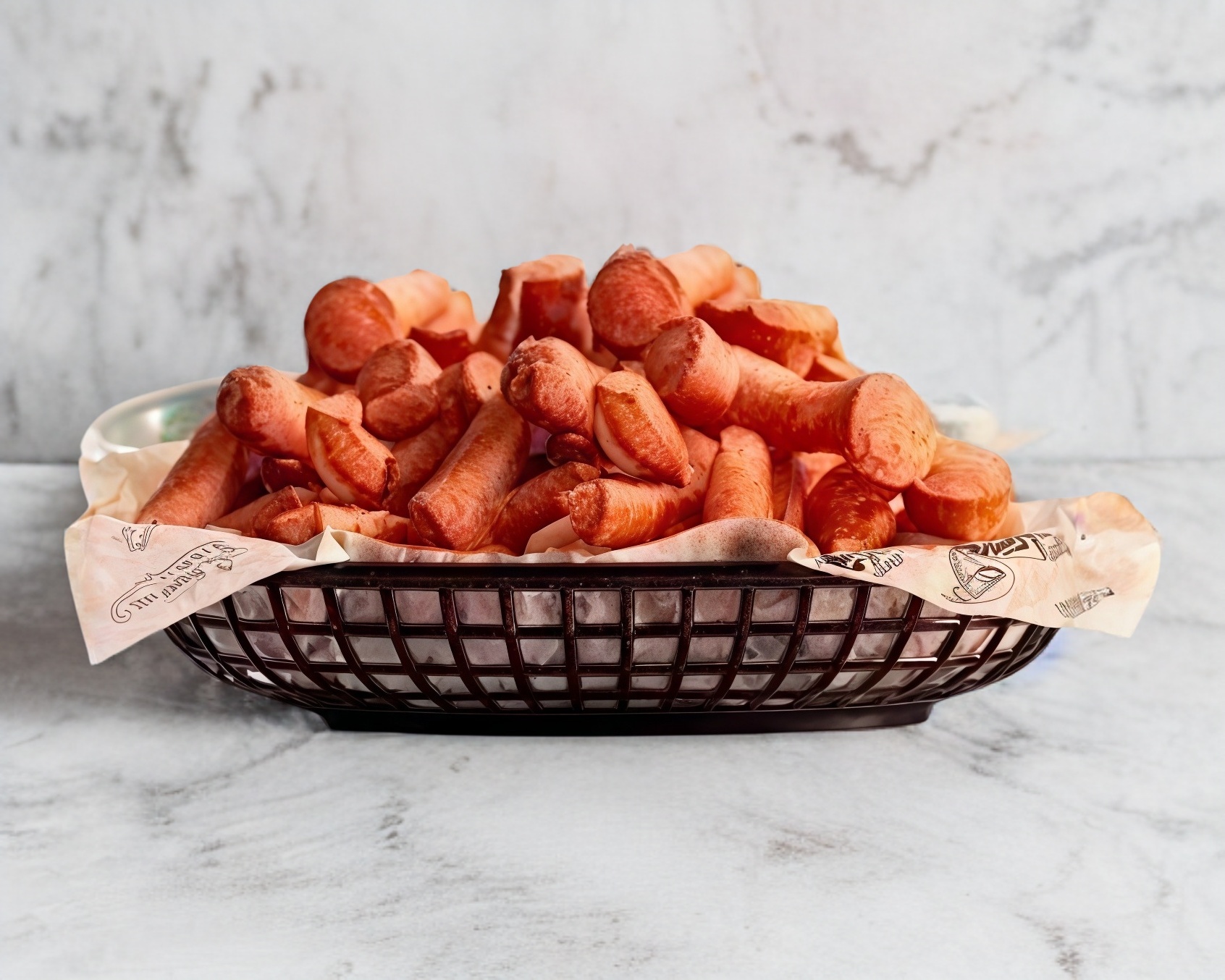 200 g de salchicha corte pulpo con aderezo ketchup queso amarillo y salsa picante