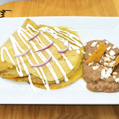 Chalupas con salsa verde y roja, con cebolla picada + Agua de Sabor 480ml